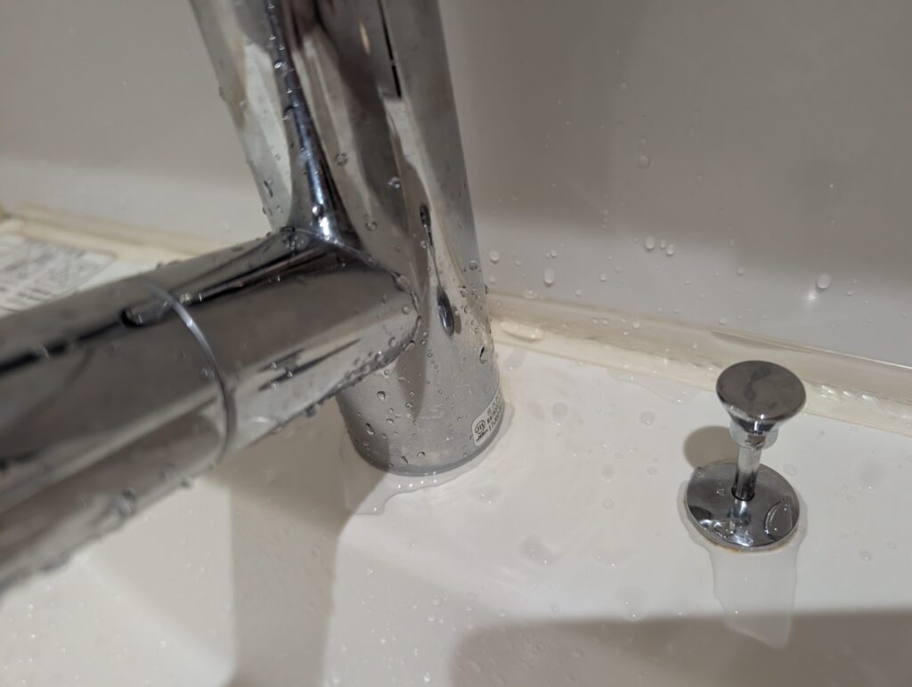 顔を洗っても、手を洗うだけでも周りに水が飛び散ります・・・